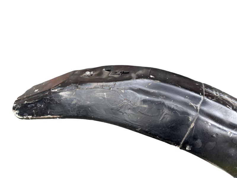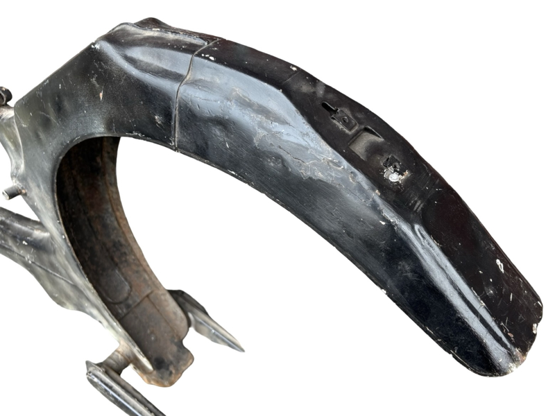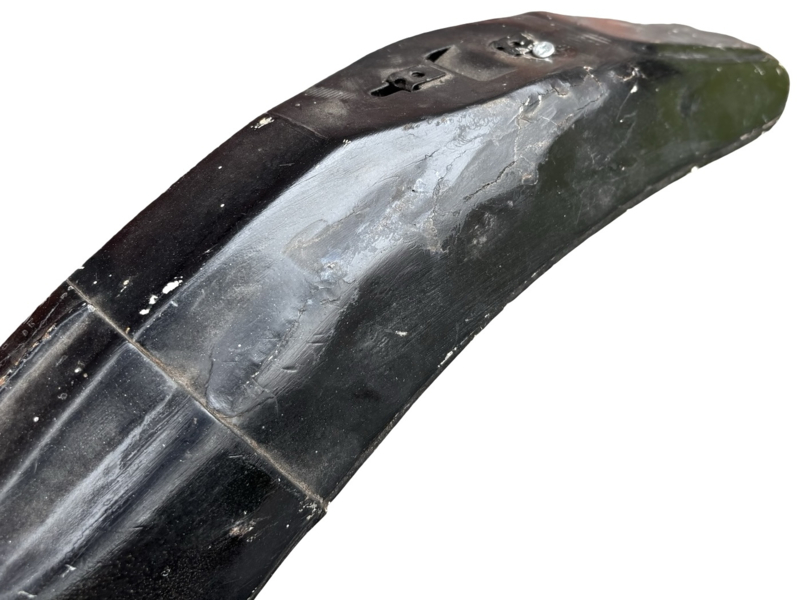- Rear fender is dented at the bottom.
